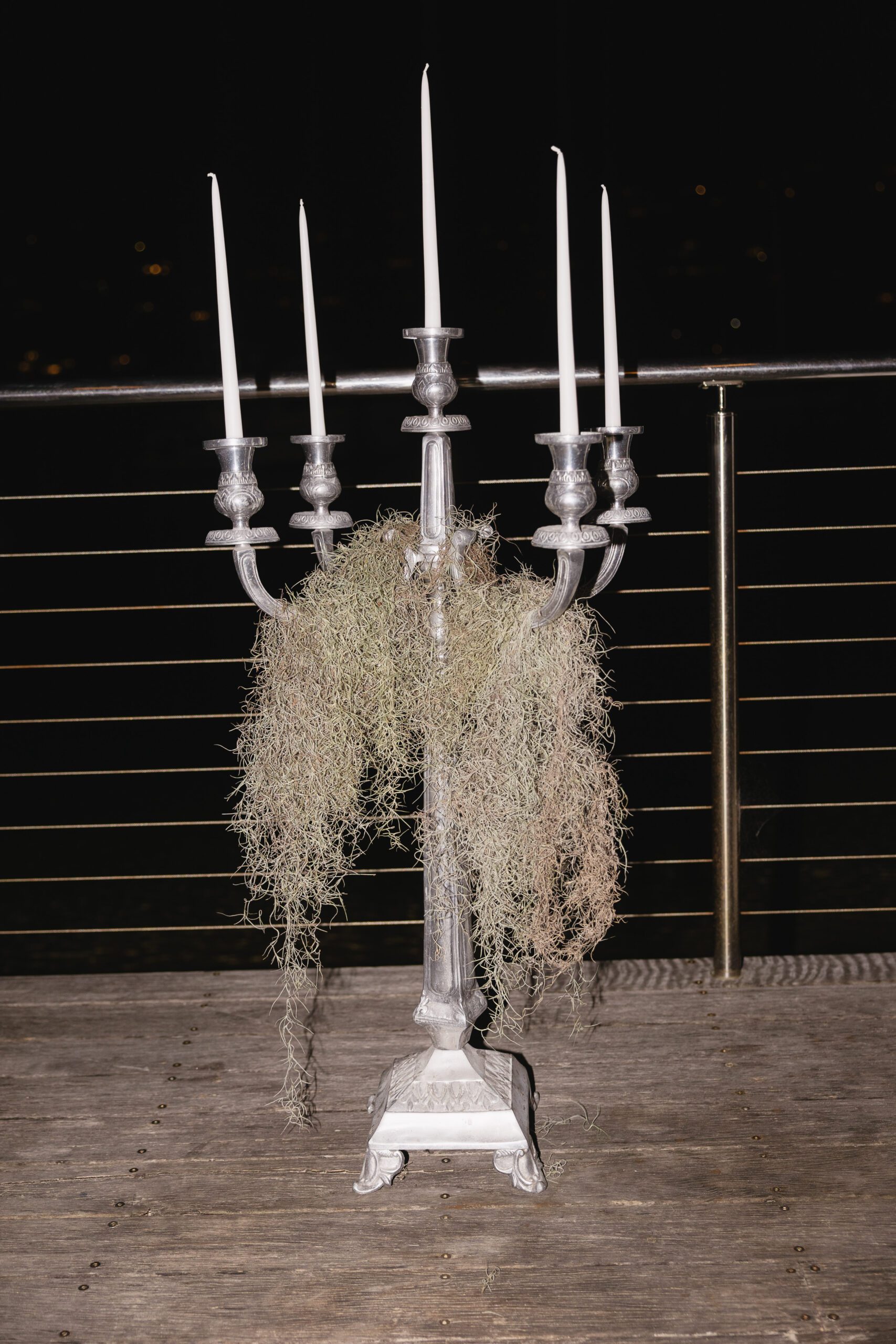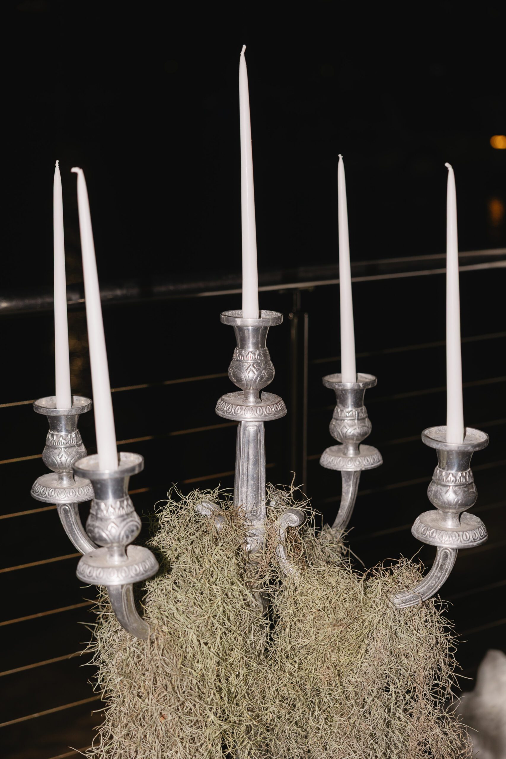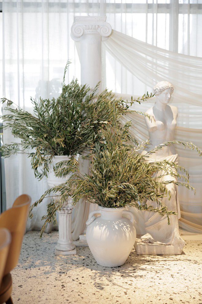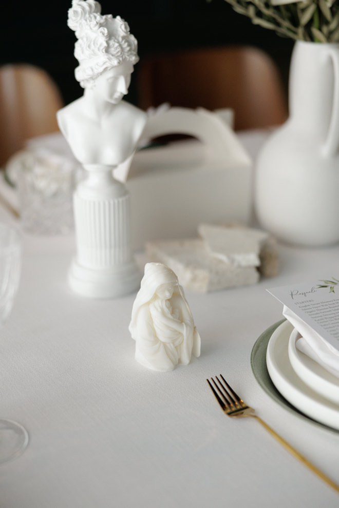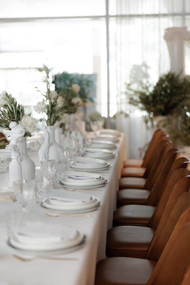 Adjacent to the tables we styled the mirror ledge with our candles with greenery.