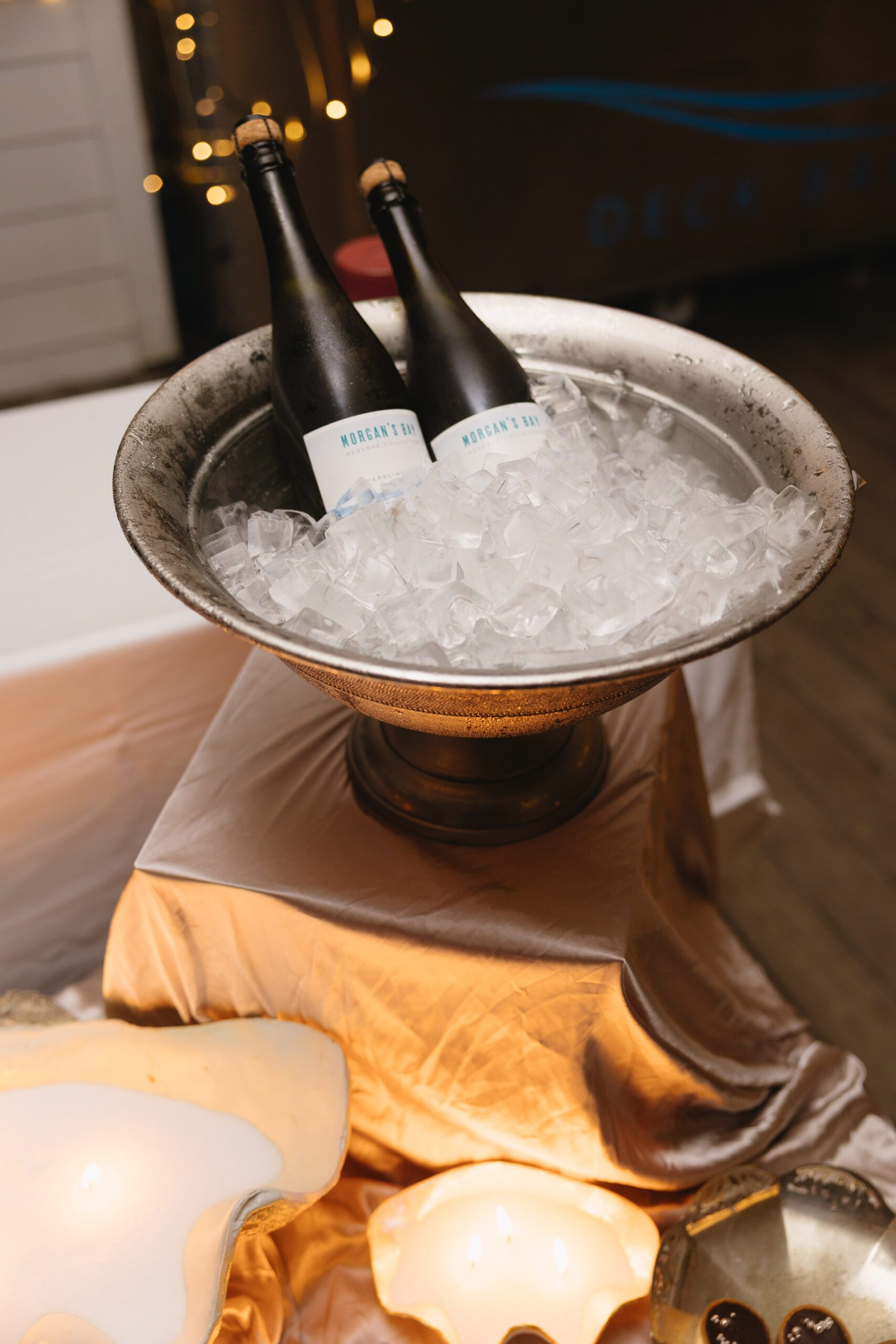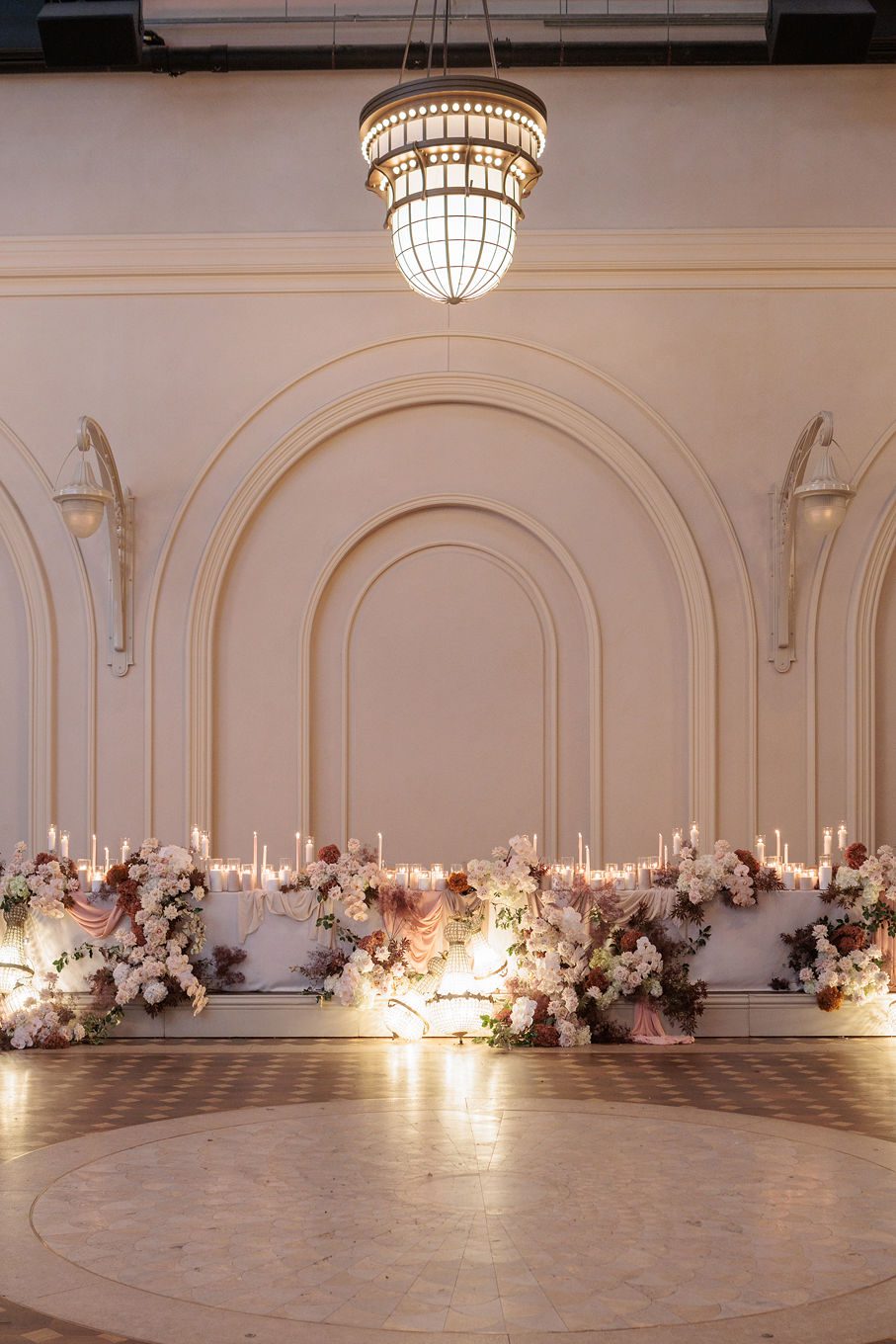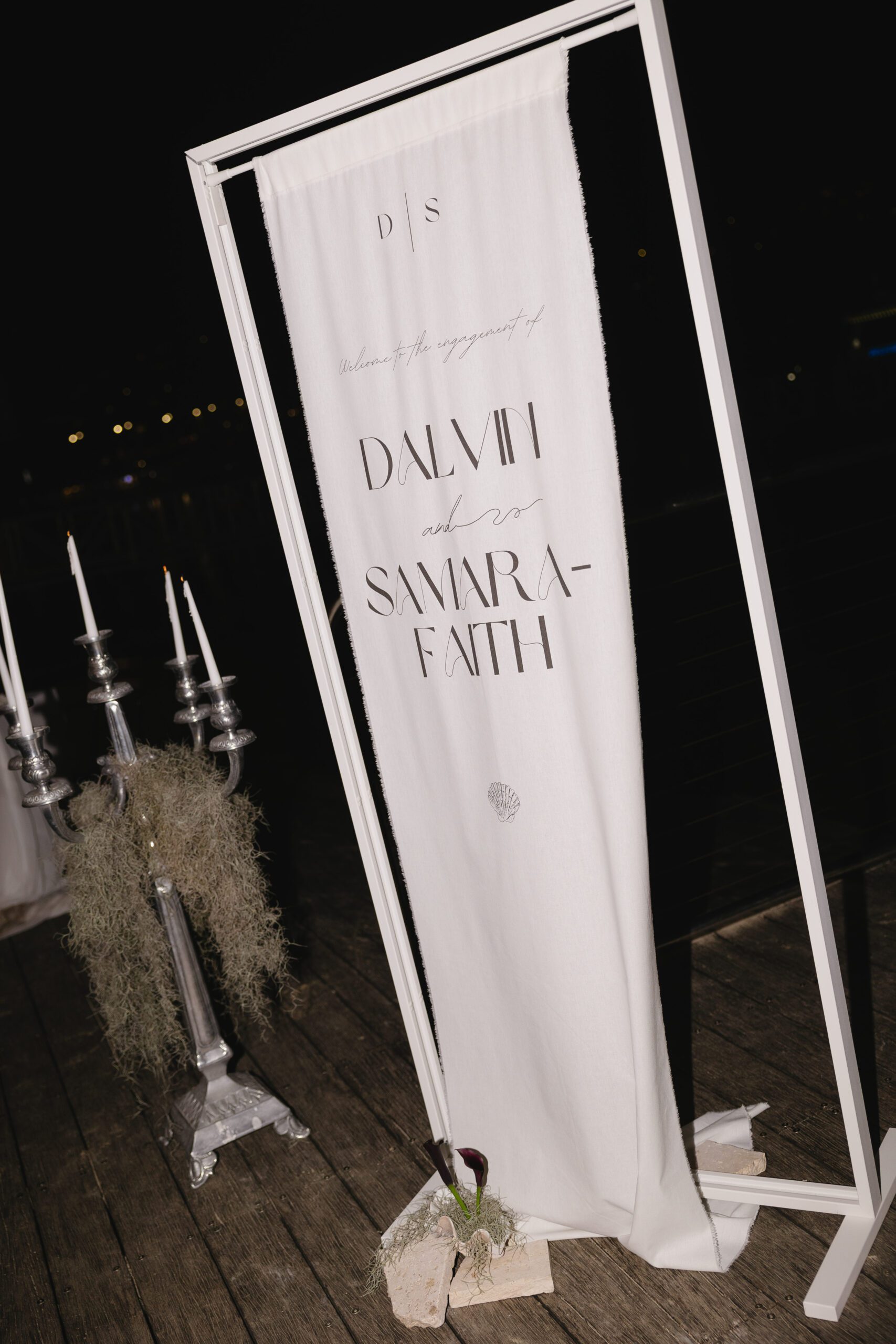 Adjacent to the tables we styled the mirror ledge with our candles with greenery.