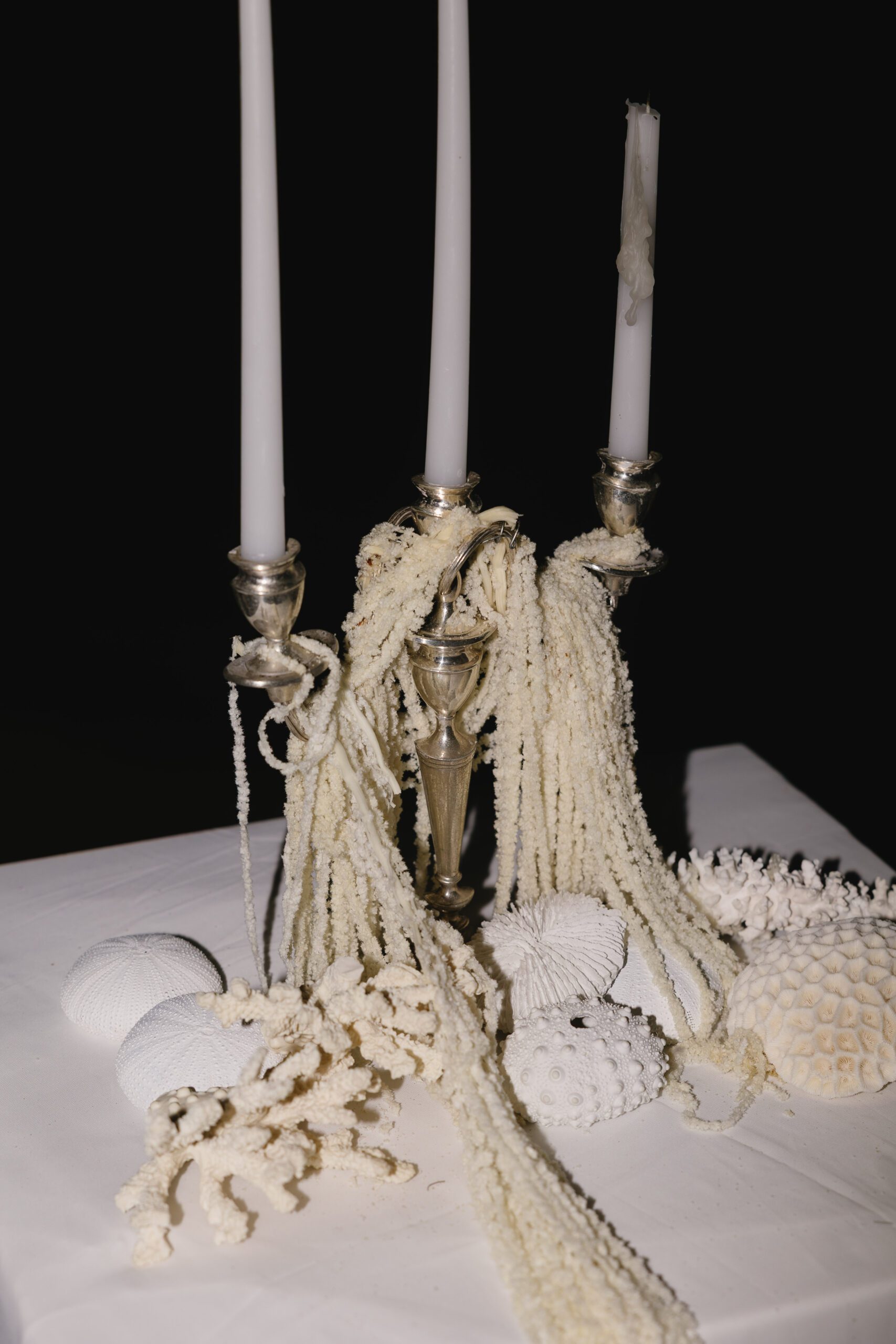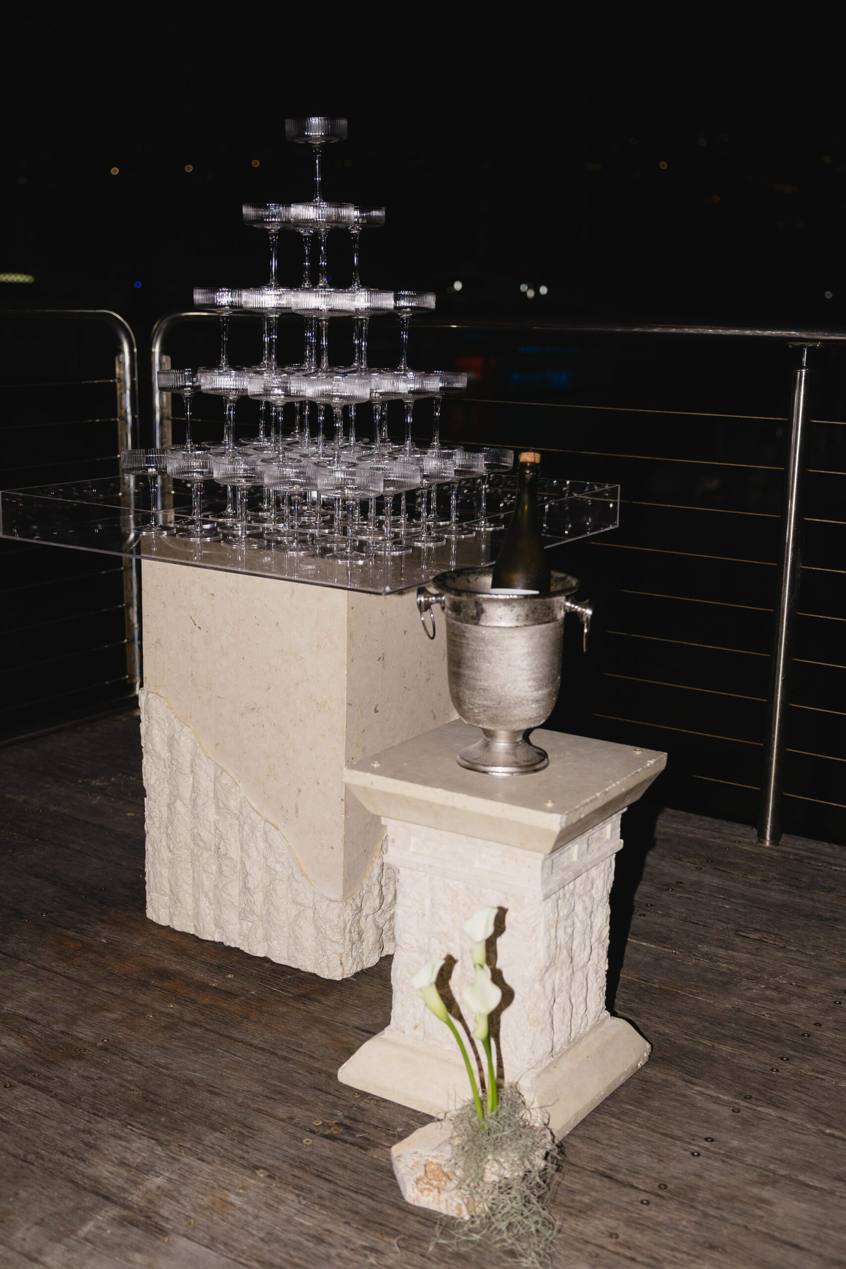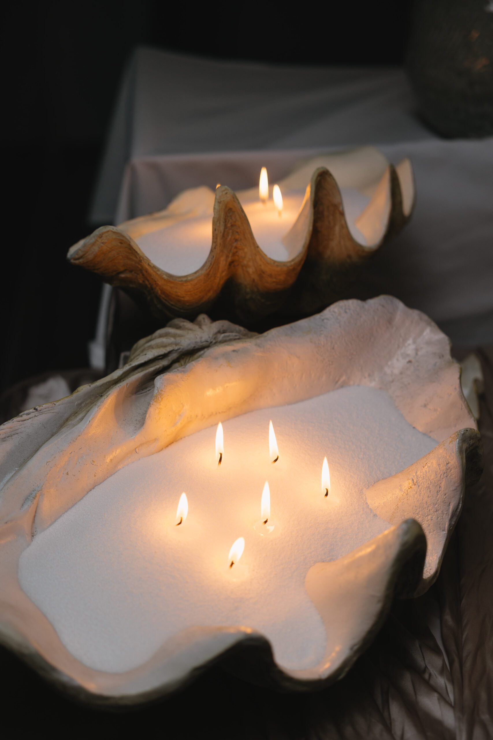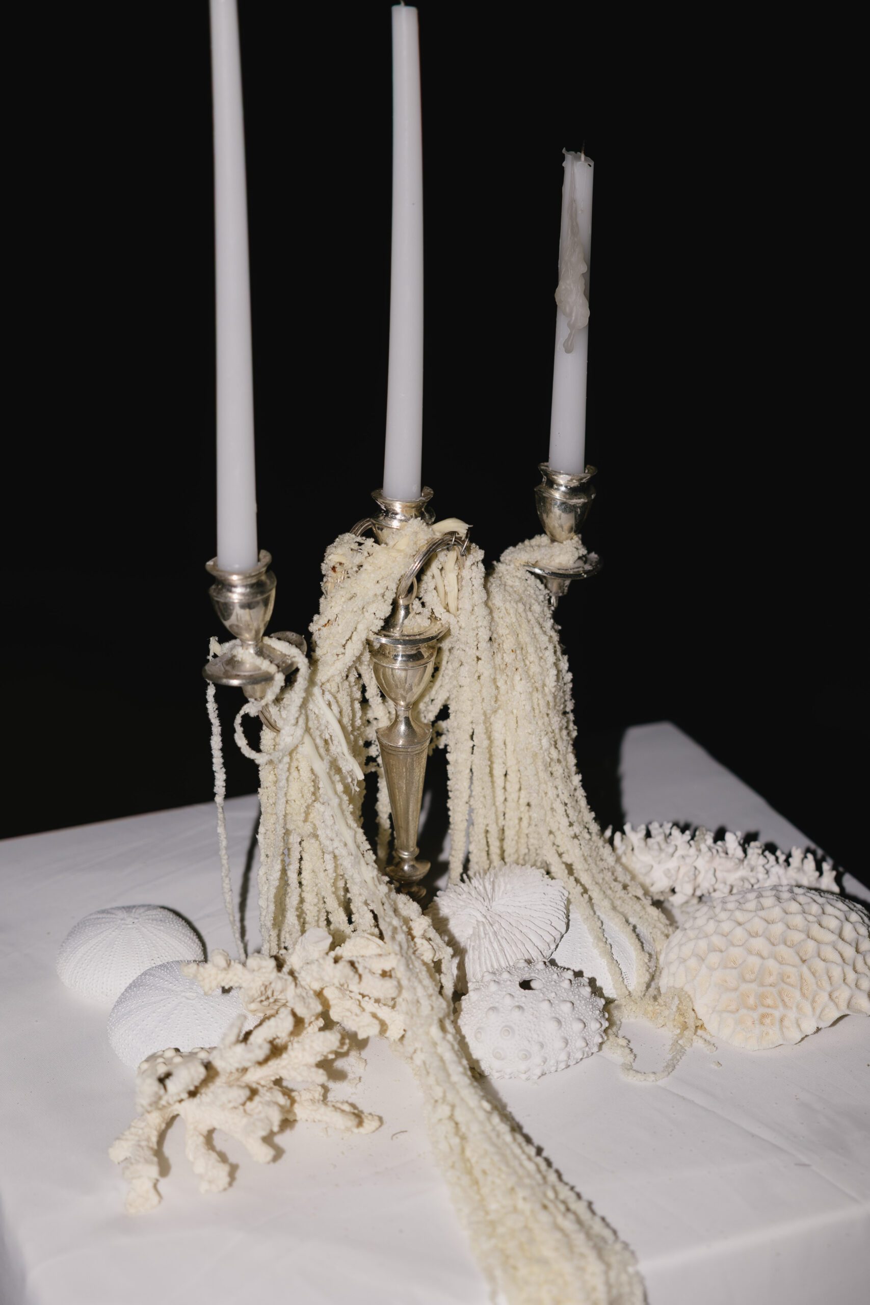 Adjacent to the tables we styled the mirror ledge with our candles with greenery.