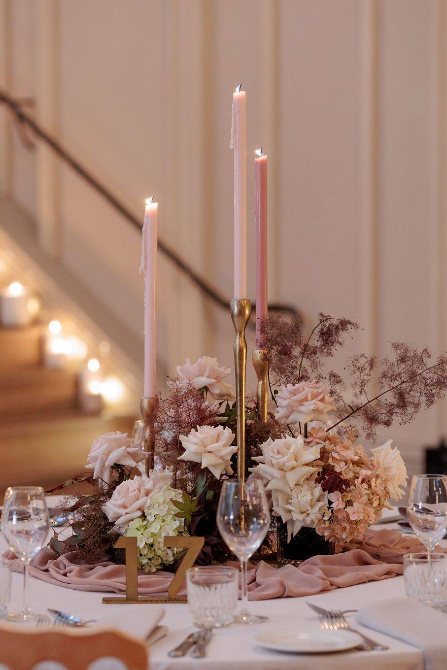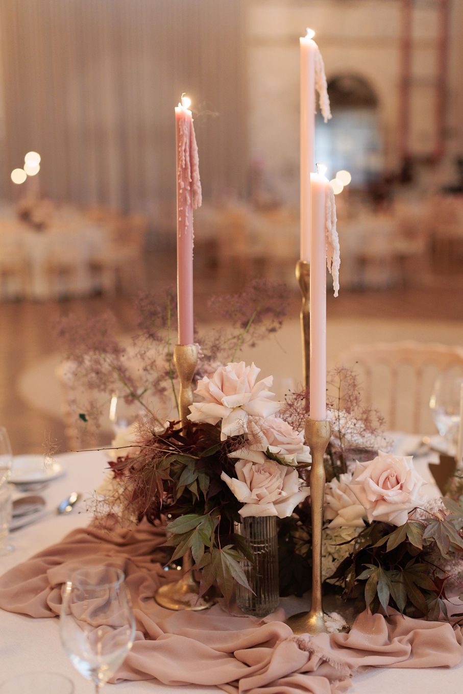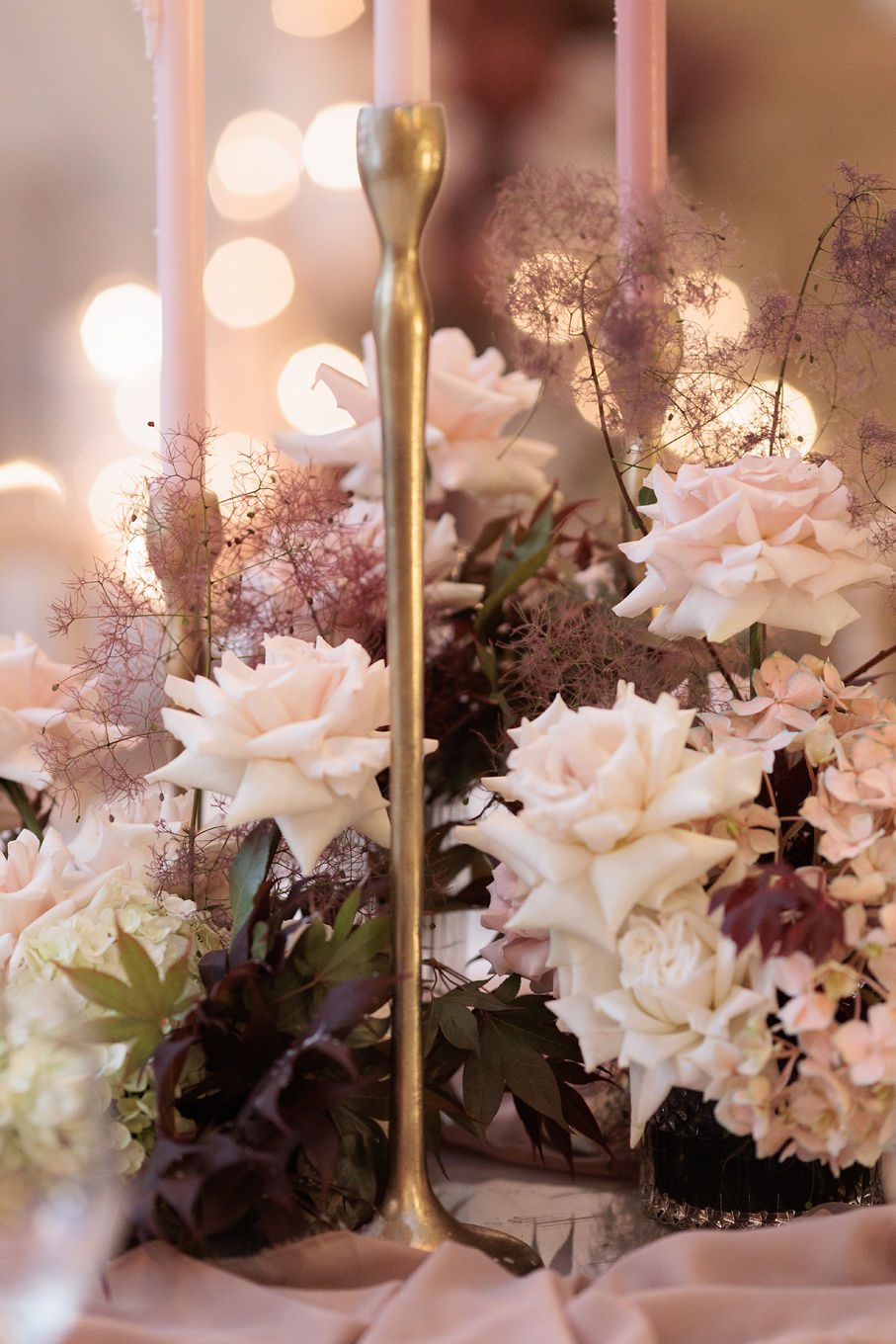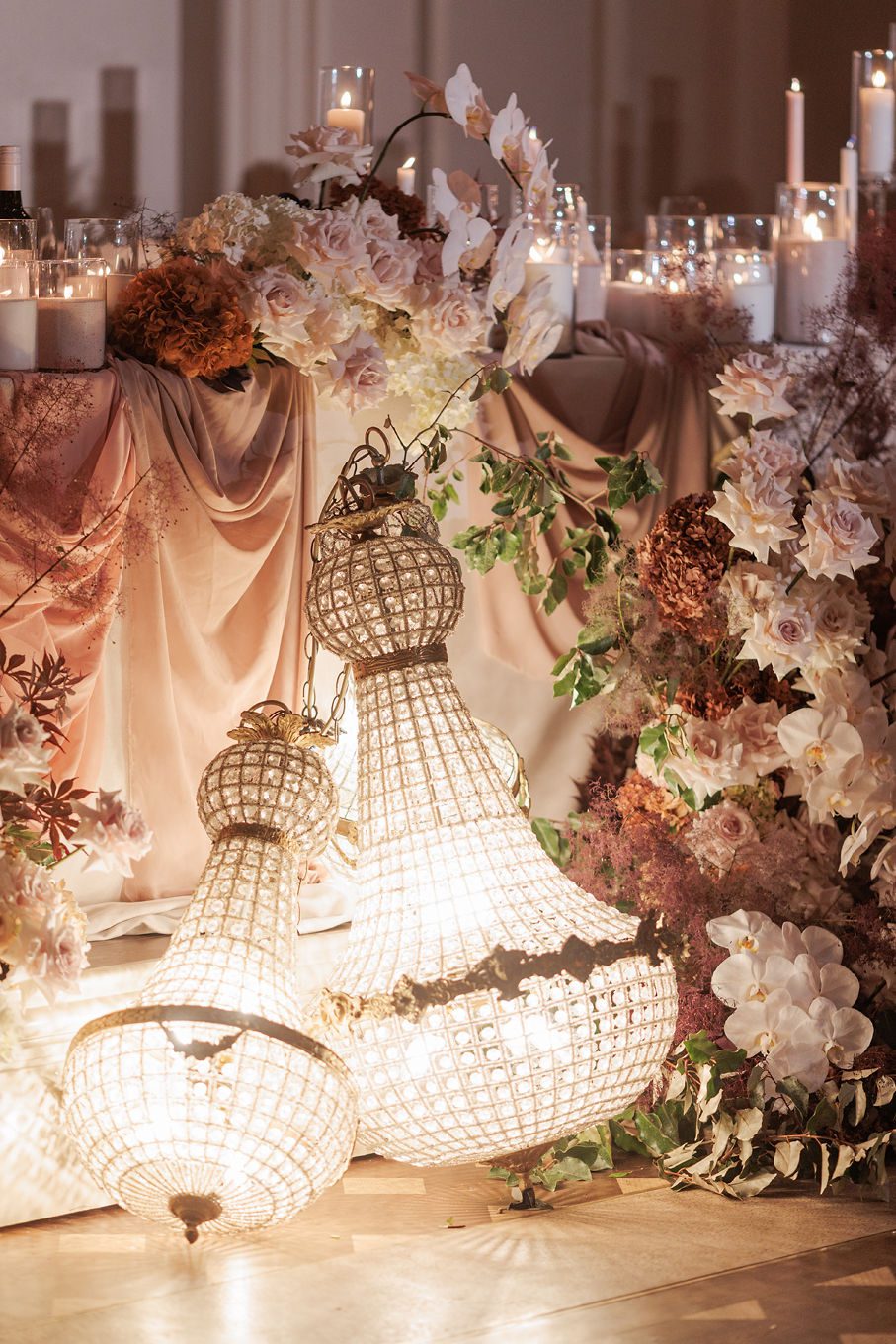 The banquet tables were styled with real touch florals and crystal candle sticks.