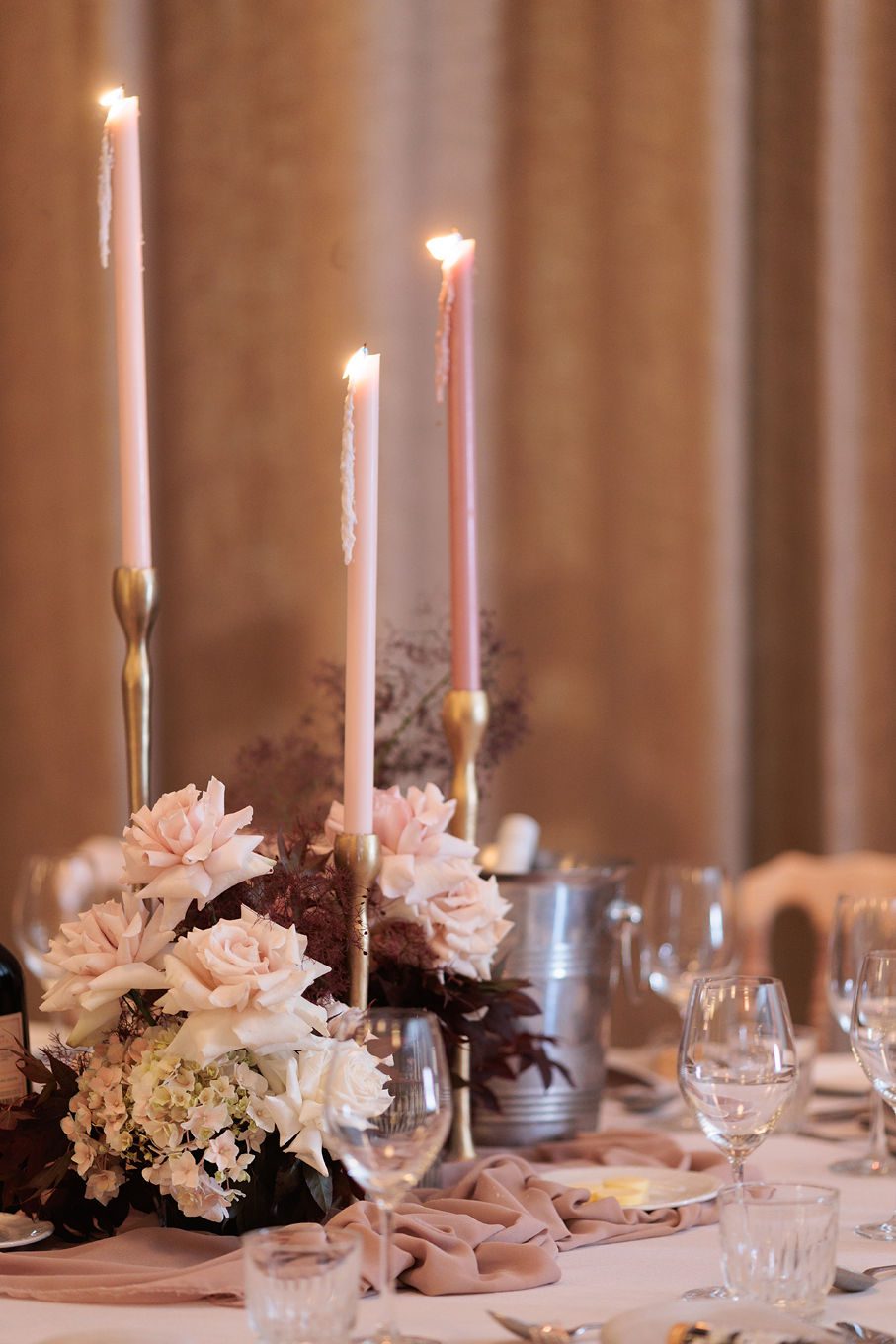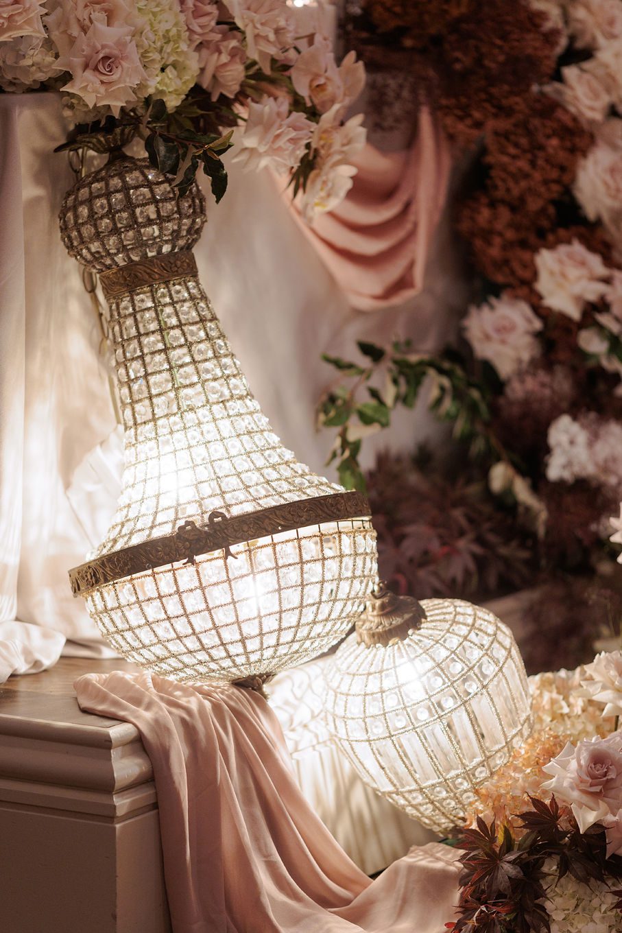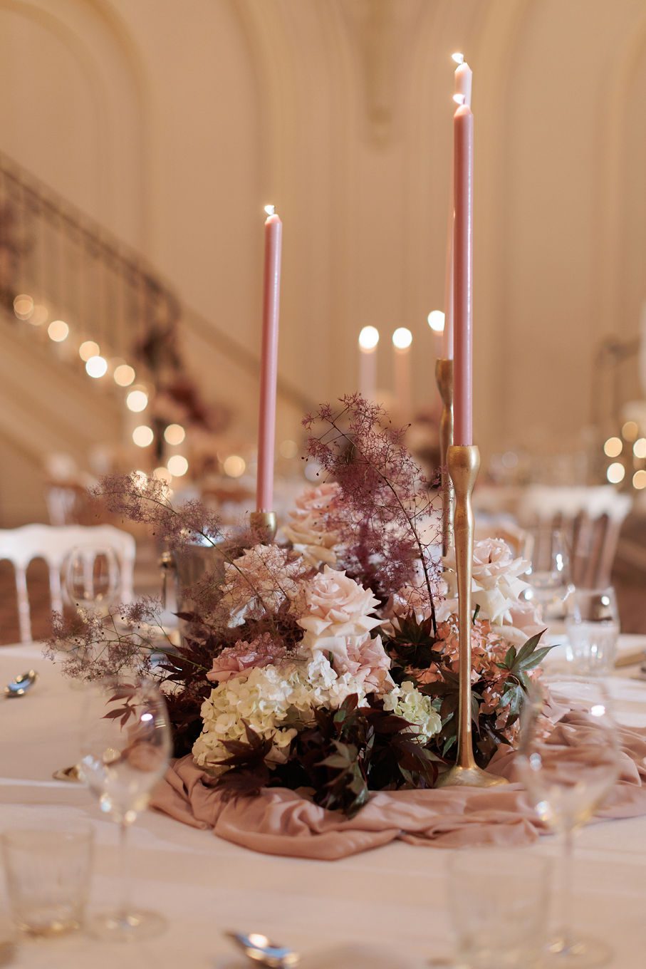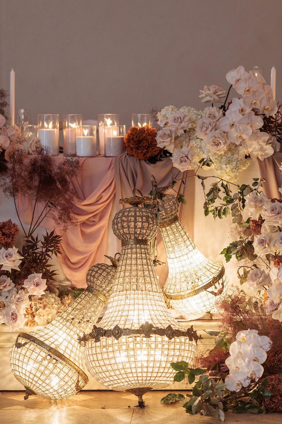 The banquet tables were styled with real touch florals and crystal candle sticks.