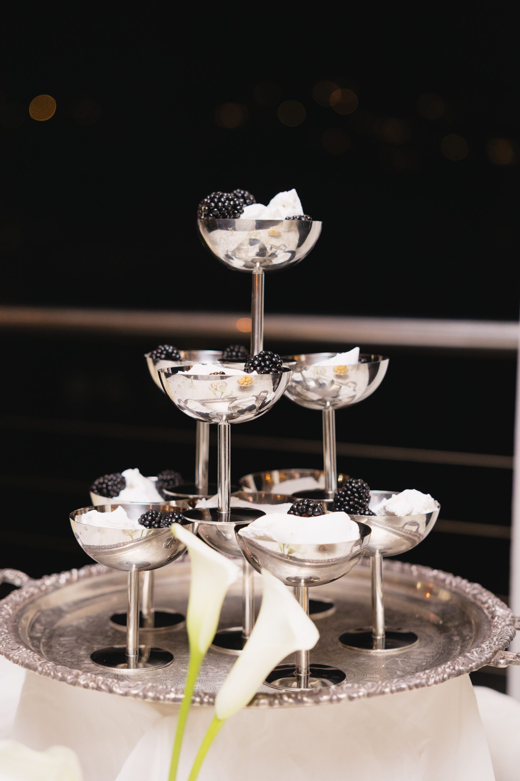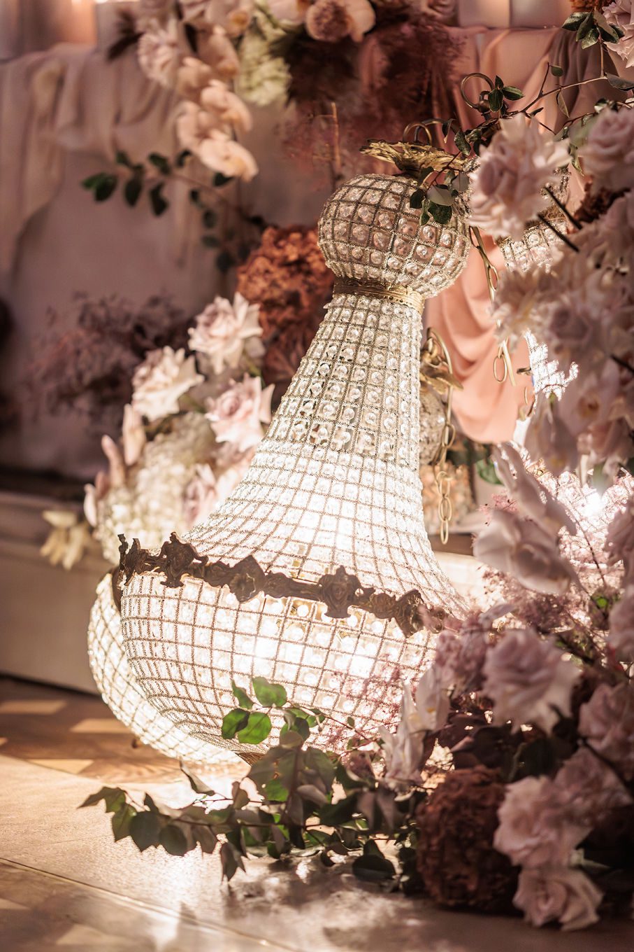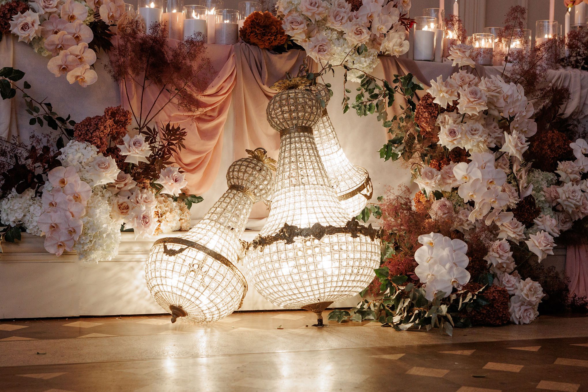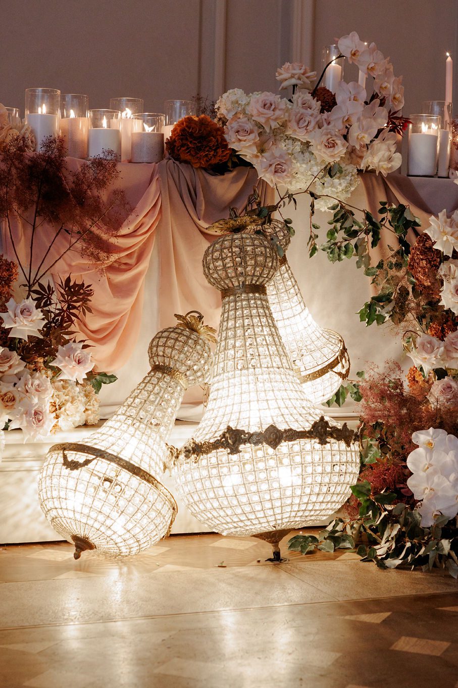 The banquet tables were styled with real touch florals and crystal candle sticks.