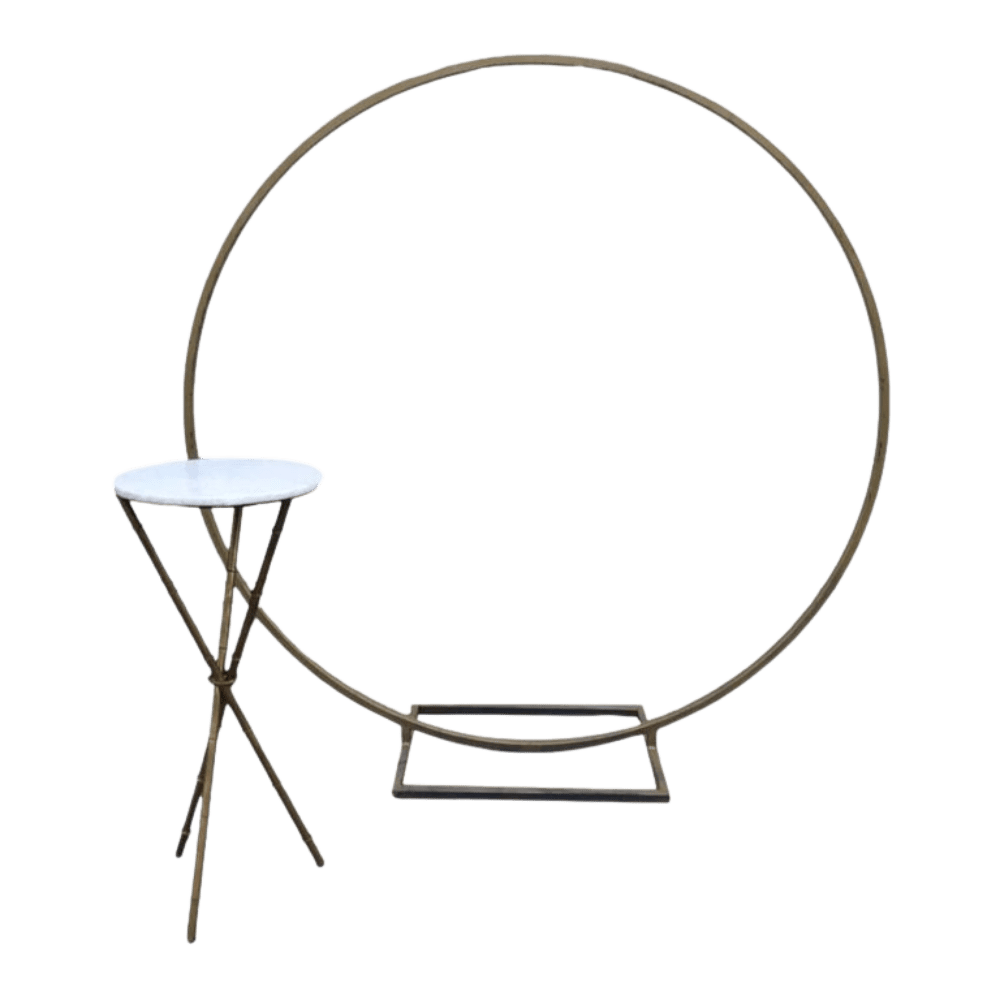Our Circle “Hoop” arbour a stunning and modern addition to any outdoor wedding ceremony or event. This type of arbour is locally  made from durable metal, it dismantles in half making it easy to transport and set up.