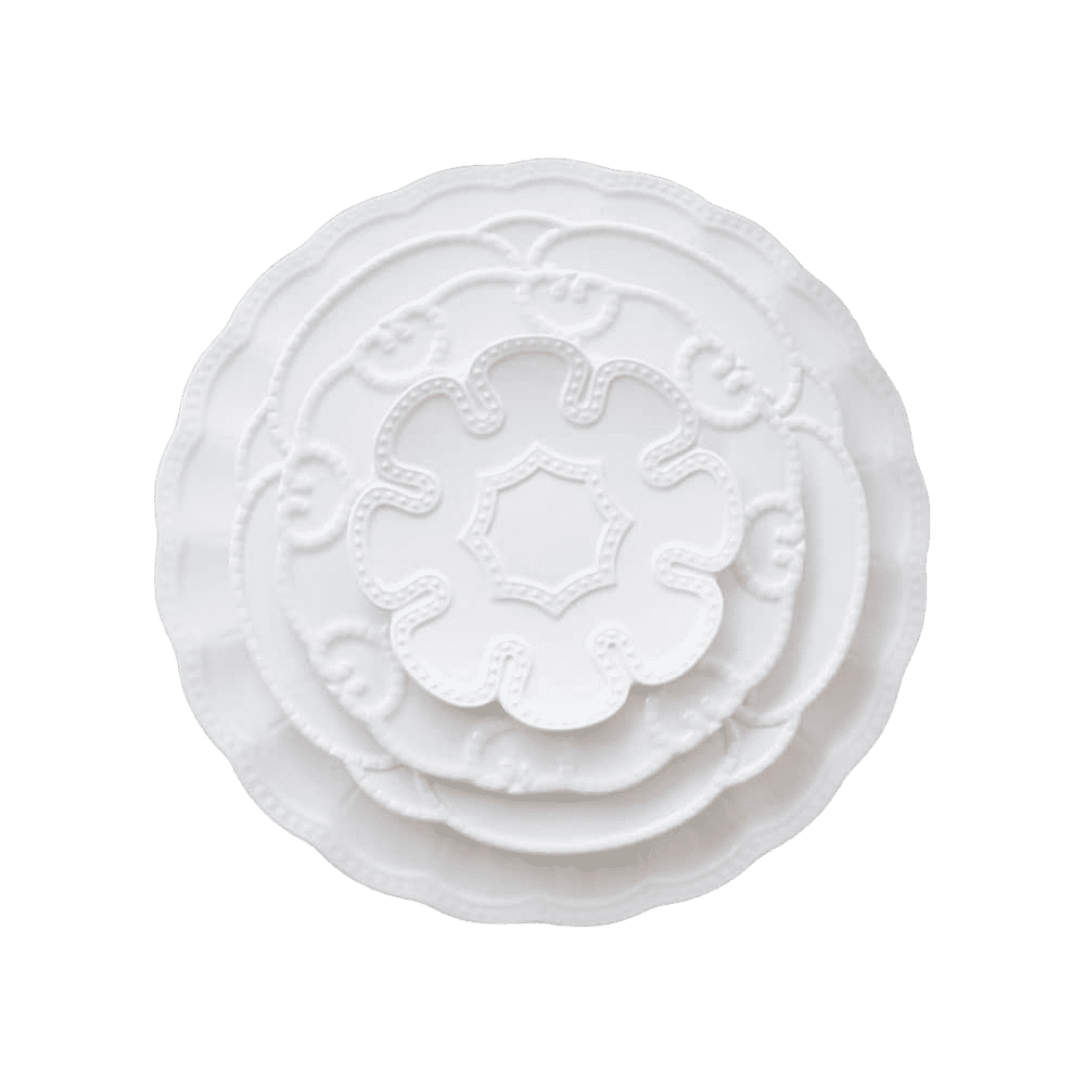 This white Tiffany ceramic plate set is a stunning and elegant addition to any special event or wedding. With its sleek and sophisticated design, this plate is sure to add a touch of sophistication and class to any table setting. The plates are made of high-quality ceramic, ensuring it is both durable and long-lasting. The brilliant white color is sure to complement any color scheme or decor.
